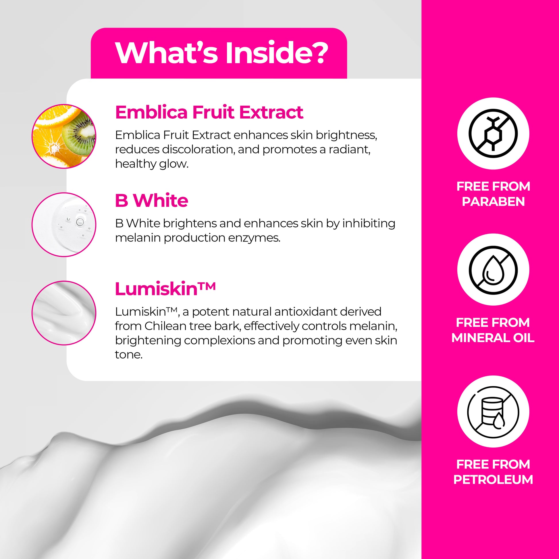 Emblica Fruit Extract enhances skin brightness, reduces discoloration, and promotes a radiant, healthy glow.